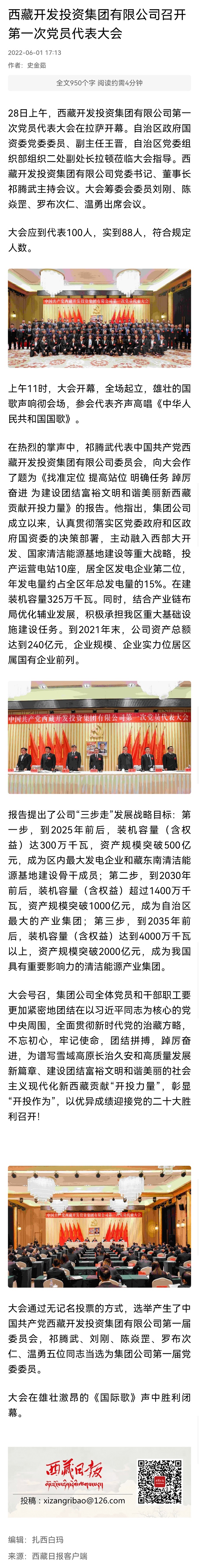 中國共產(chǎn)黨西藏開發(fā)投資集團有限公司 第一次黨員代表大會