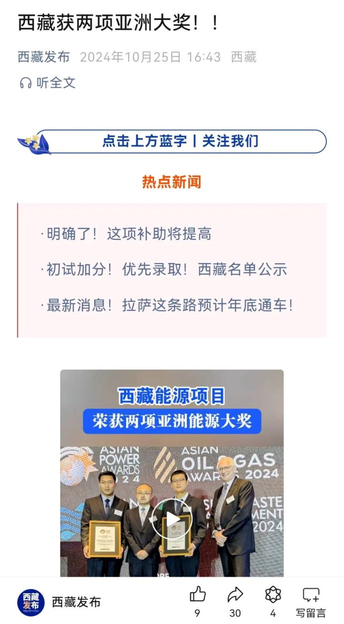媒體報道丨西藏能源項目榮獲兩項亞洲能源大獎