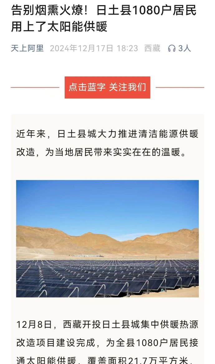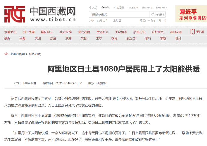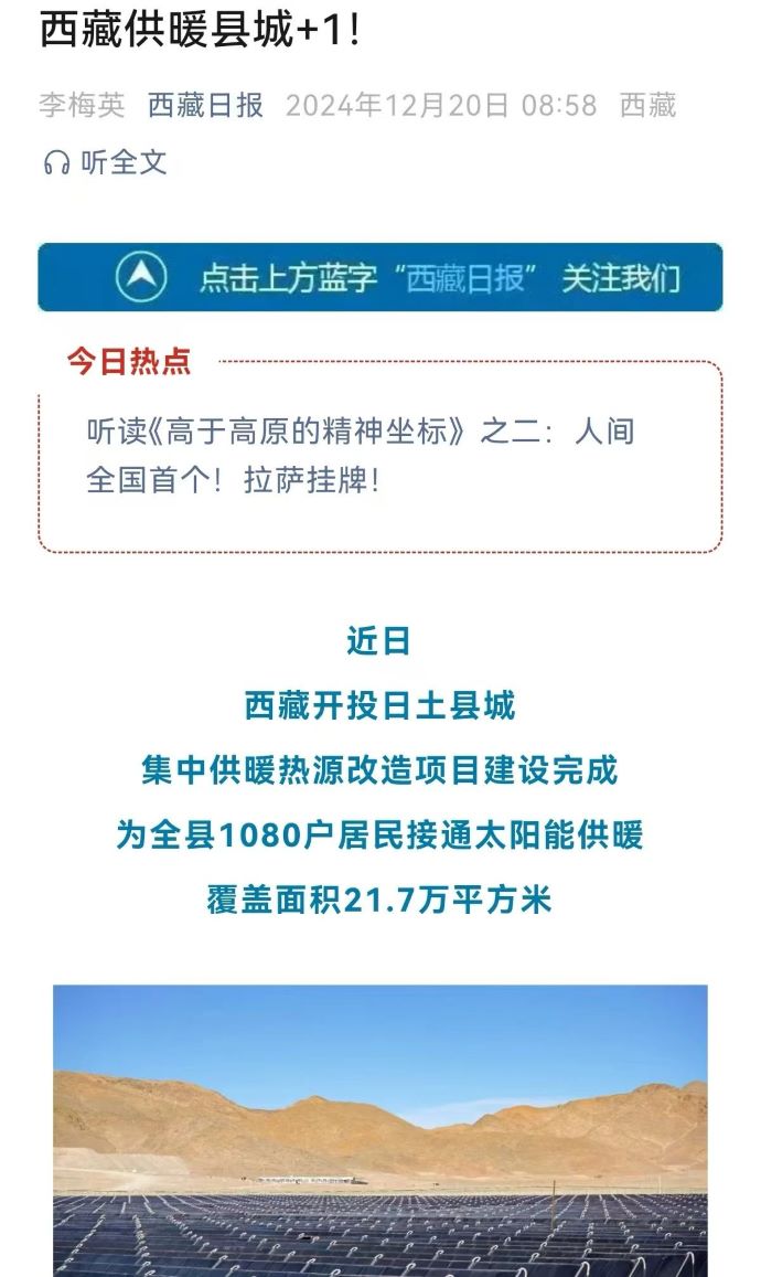 媒體報(bào)道丨告別煙熏火燎!日土縣1080戶居民用上了太陽能供暖
