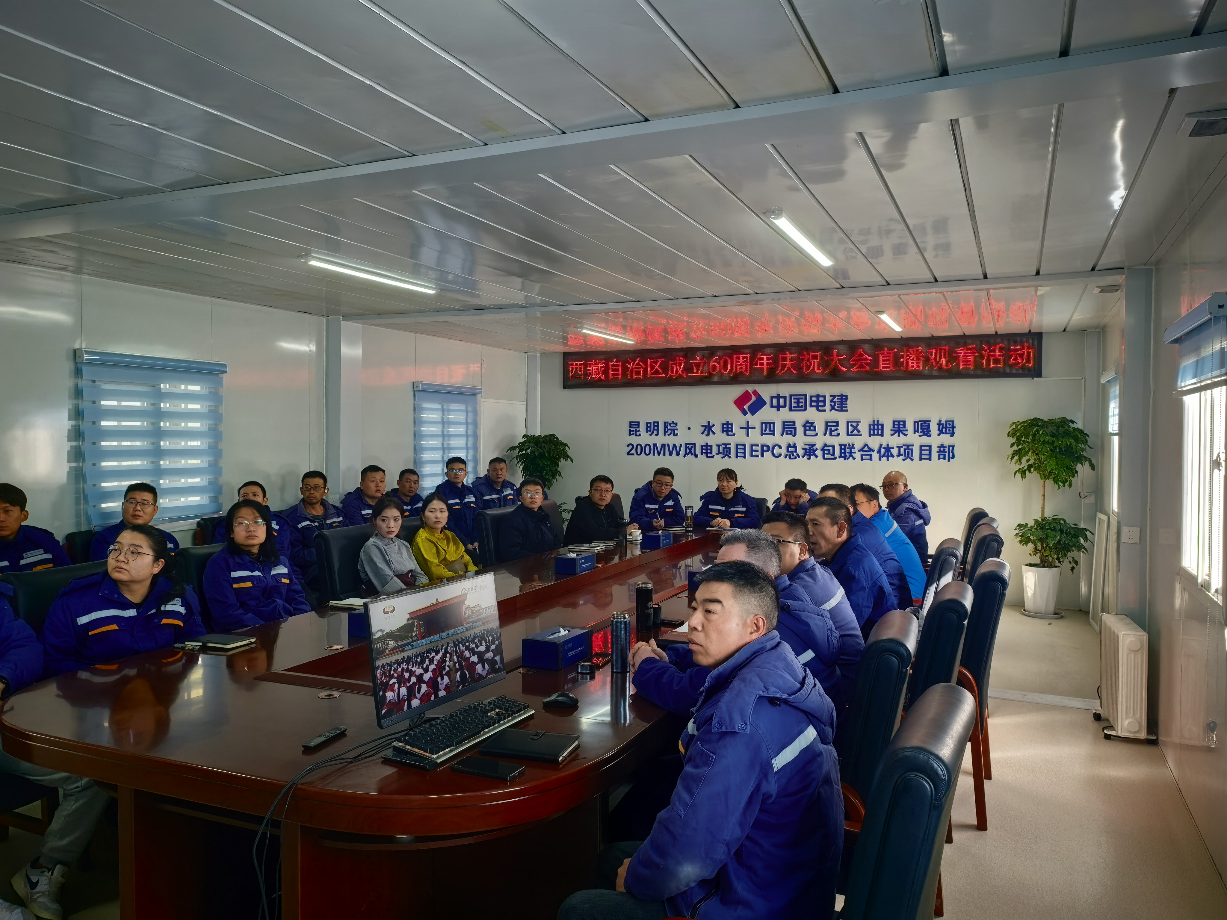 西藏開投色尼區(qū)曲果嘎姆200MW風(fēng)電項目組織觀看西藏自治區(qū)成立60周年慶?;顒娱_幕盛況