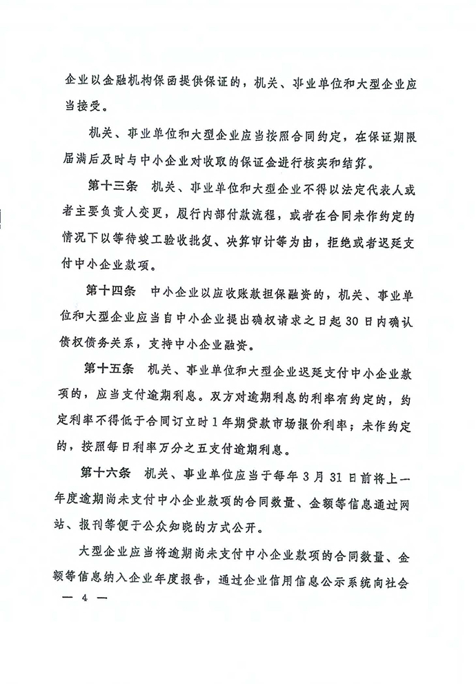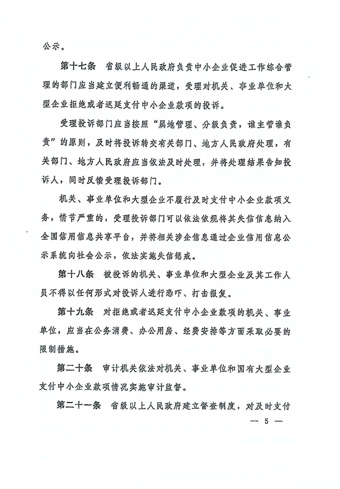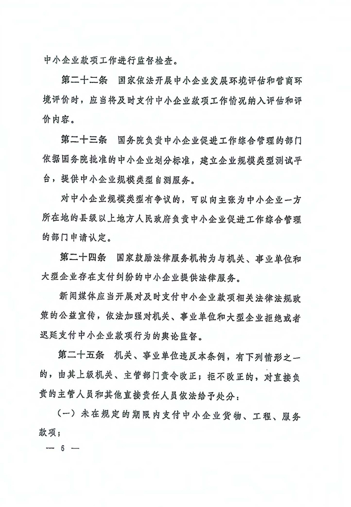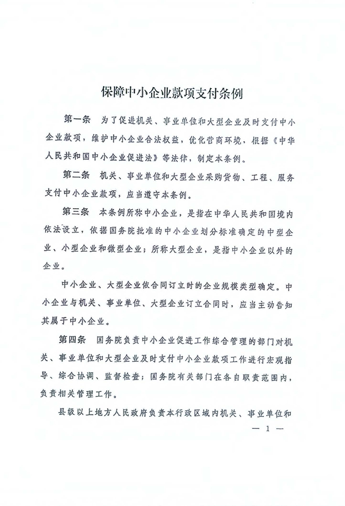 保障中小企業(yè)款項支付條例