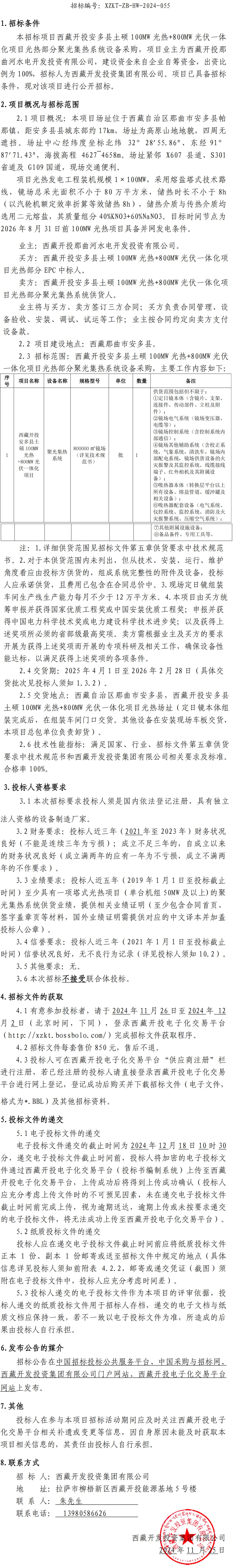 西藏開投安多縣土碩 100MW 光熱+800MW光伏一體化項目光熱部分聚光集熱系統(tǒng)設(shè)備采購招標(biāo)公告