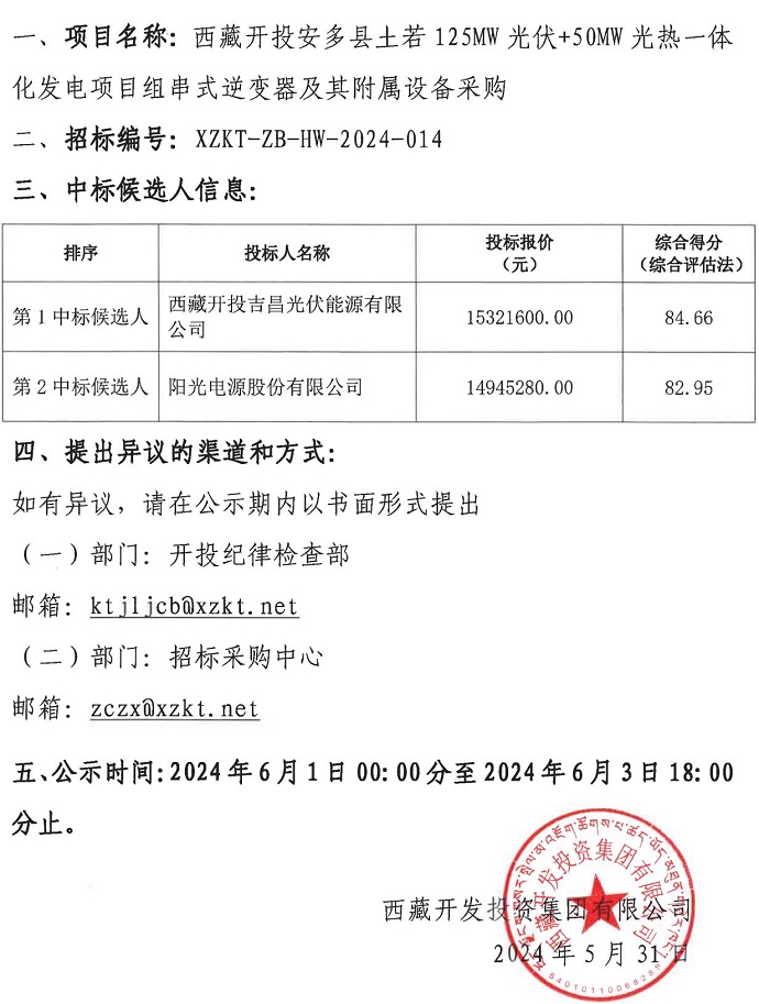 中標(biāo)候選人公示