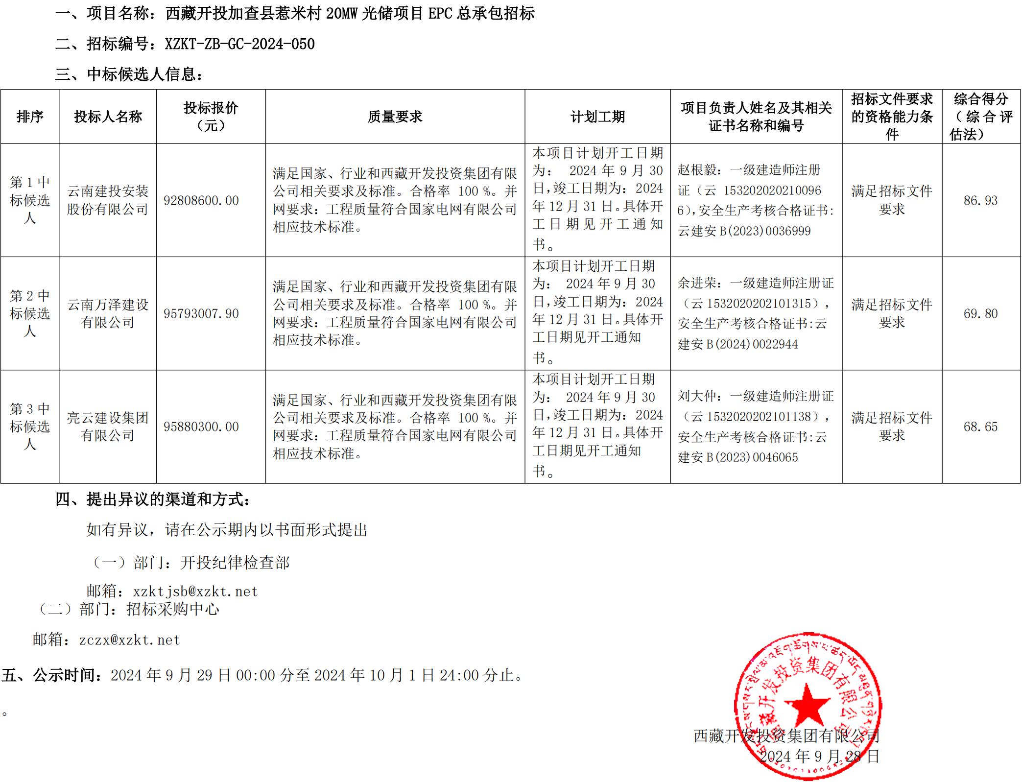 中標(biāo)候選人公示